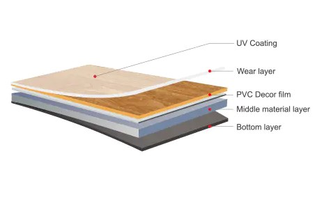 | الطبقة الأساسية | توفر الطبقة الأساسية استقرار الأرضيات ومقاومة الماء. تقليديا ، كان هذا مصنوع من PVC مرنة. ومع ذلك ، ظهرت خيارات أساسية جامدة أحدث: